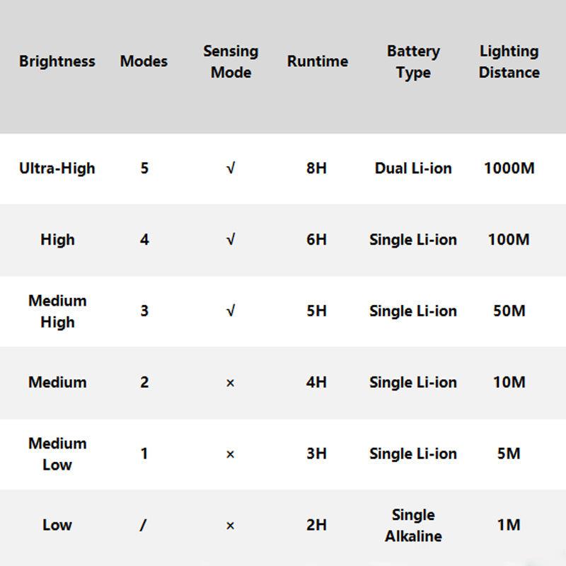 SENSING MODE – Pressing and holding the regular switch activates the sensing mode, allowing you to turn the headlamp on or off with a wave of your hand within the sensing range for convenience.