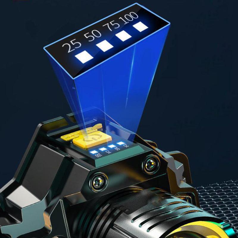 VERSATILE MODES WITH ZOOM FUNCTION – The headlamp features a telescopic zoom, allowing you to easily switch between spotlight mode (forward) for long-distance illumination and floodlight mode (backward) for wide-area lighting.