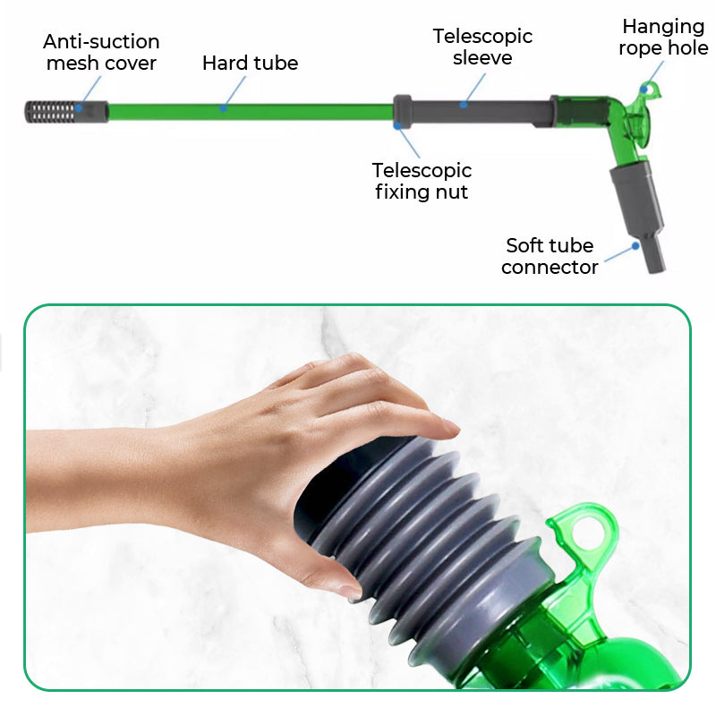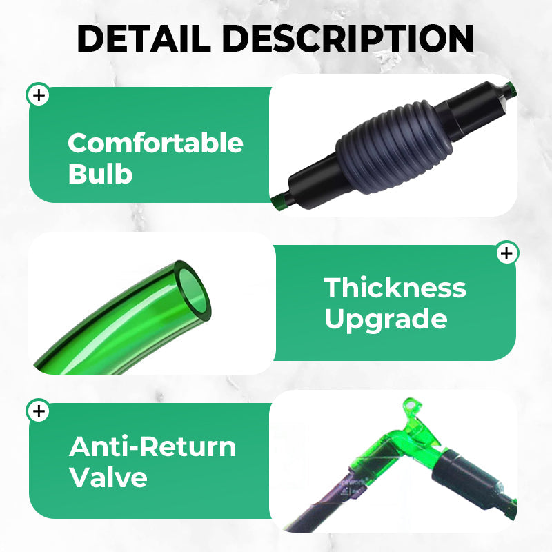 PROTECTIVE MESH COVER – The protective net prevents small fish, shrimp, or other aquatic creatures from being sucked into the siphon, ensuring the safety of your fish during the water change process.